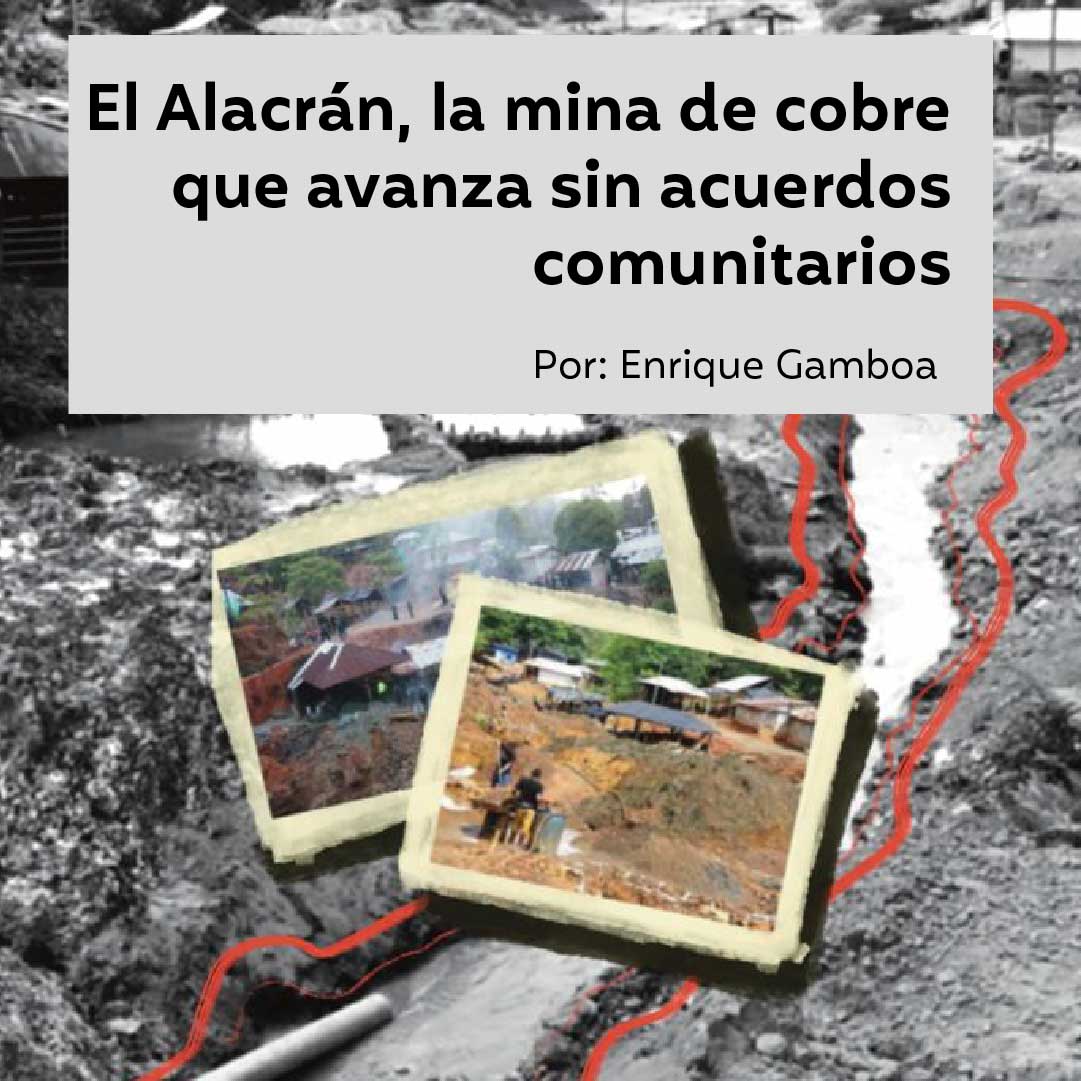 El pasado 28 de enero la Autoridad Nacional de Licencias Ambientales (ANLA) inició las sesiones de evaluación ambiental del proyecto minero El Alacrán, ubicado en el municipio de Puerto Libertador, sur del departamento de Córdoba. Con este paso la empresa Cobre Minerals busca obtener la licencia ambiental para la explotación de oro y cobre por los próximos quince años. Entre los conflictos que giran en torno a la mina está que la multinacional, con capital chino, busca implementar la minería a gran escala, mientras la comunidad defiende la minería artesanal que vienen desarrollando desde hace más de cuarenta años. A la espera de la decisión, líderes indígenas advierten que aún no se ha llegado a un acuerdo para una reubicación digna de las comunidades afectadas. El proyecto también ha provocado alertas en sectores ambientales por consecuencias como el desvío de fuentes de agua y la deforestación a gran escala.