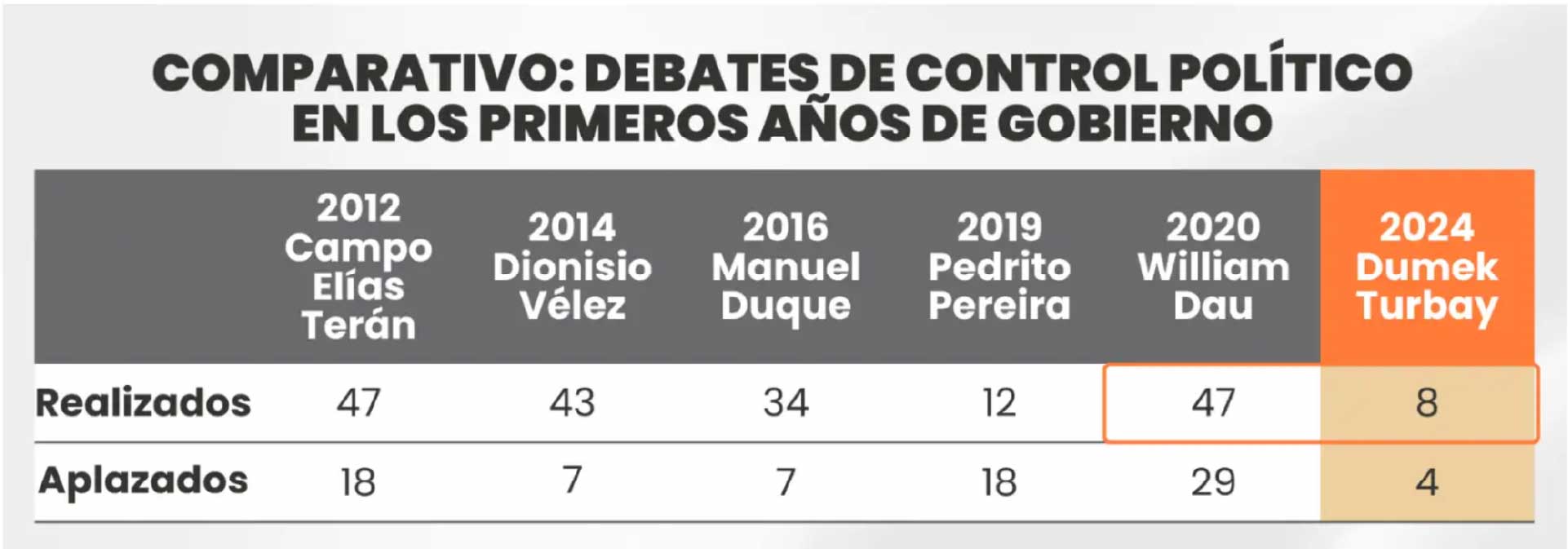 Comparativo de los debates de control político construido por Funcicar.