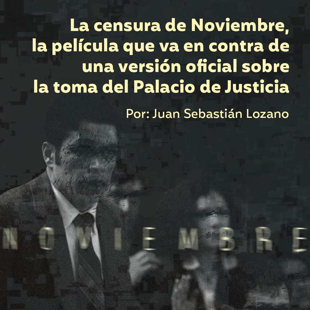 Noviembre, dirigida por Tomás Corredor y producida por Burning S.A.S., narra un momento álgido de la toma del Palacio. La película transcurre en el baño del tercer piso, donde estuvieron retenidas unas sesenta personas durante veintisiete horas. Las escenas abordan un lapso breve en medio de la retoma a sangre y fuego por parte del Ejército, acción que causó la mayoría de las muertes en aquel suceso. El saldo final superó los cien asesinados. Los personajes principales son Irma Franco, guerrillera, y Manuel Gaona, magistrado de la Corte Suprema de Justicia en ese momento.